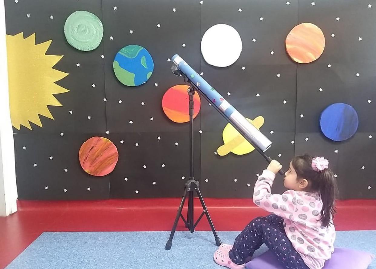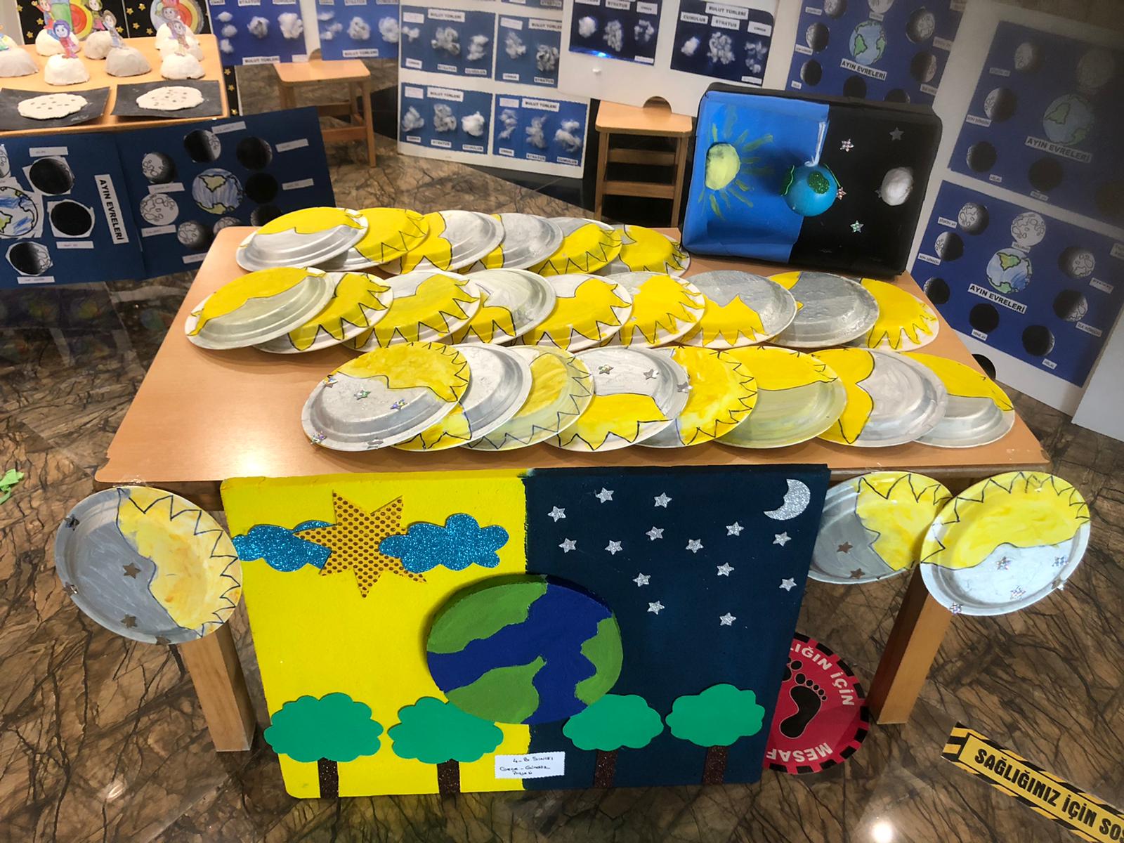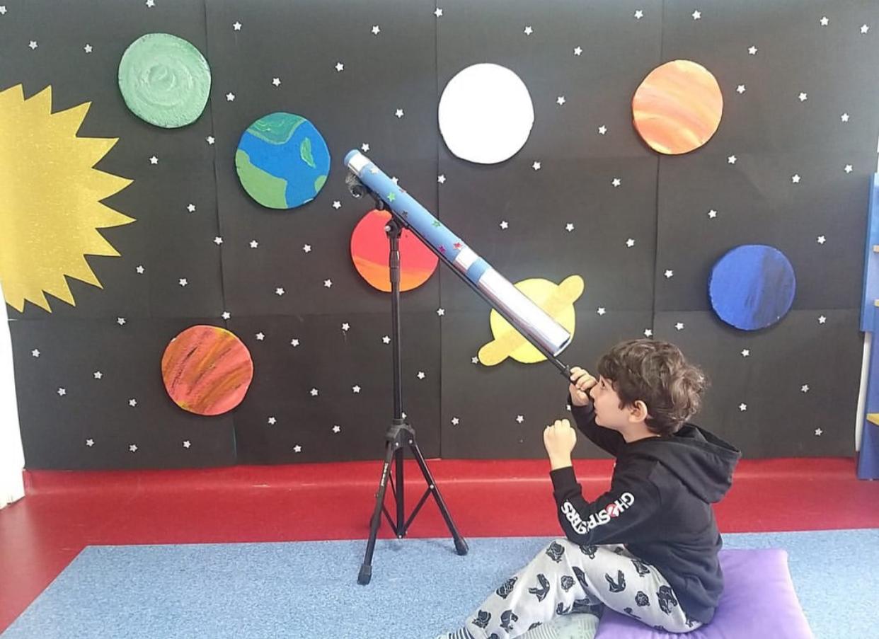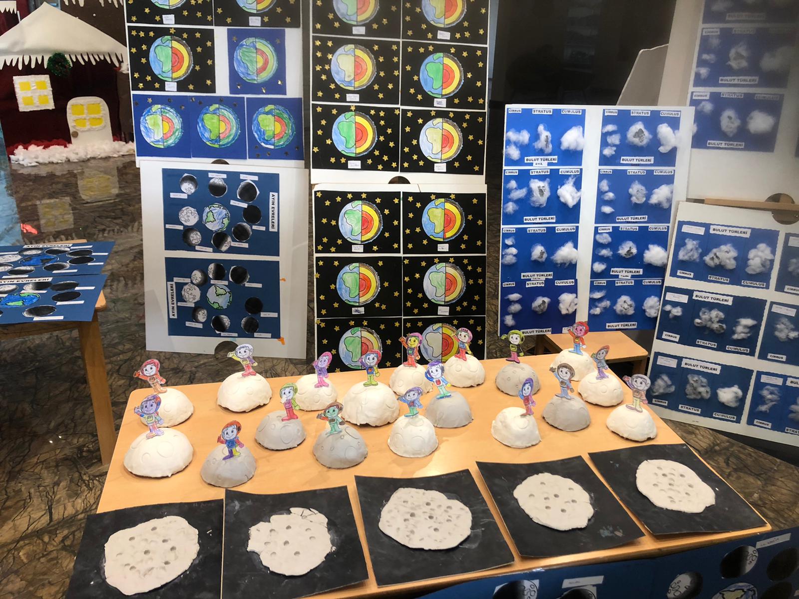 Gezegenler, göktaşları, yıldızlar ve güneş sisteminin anlatıldığı etkinlikte; çocuklar kendi yaptıkları eserlerle hem eğlendiler hem de yaşadıkları yeni deneyimle gökyüzü ve uzay bilimleri hakkında bilgi sahibi oldular.