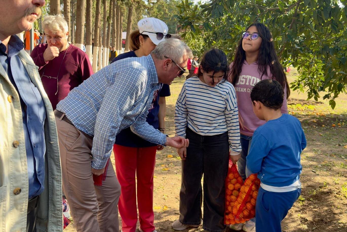 “File Bizden Hasadı Sizden” sloganıyla düzenlenen etkinlikte, fileleri alan vatandaşlar mandalinaları dalından koparmanın mutluluğunu yaşadı.