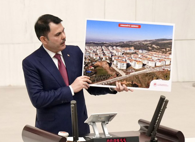 Çevre, Şehircilik ve İklim Değişikliği Bakanı Murat Kurum, TBMM’de DEM Partili Gülistan Kılıç Koçyiğit tarafından kendisine yöneltilen ‘şantiye şefi’ eleştirisine yanıt verirken, Hatay’da yapılan çalışmaların görsellerini paylaştı.