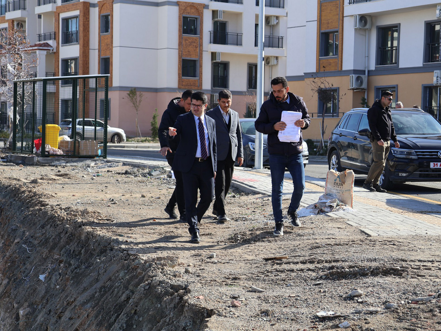 Arsuz Kaymakamı Fatih Eroğlu, İlçe Milli Eğitim Müdürü Ahmet Yanmaz ve firma yetkilileri ile birlikte, Arpaderesi TOKİ konutlarının bulunduğu alanda yapımına başlanan ilkokul, ortaokul ve lise inşaat alanlarında incelemelerde bulundu.