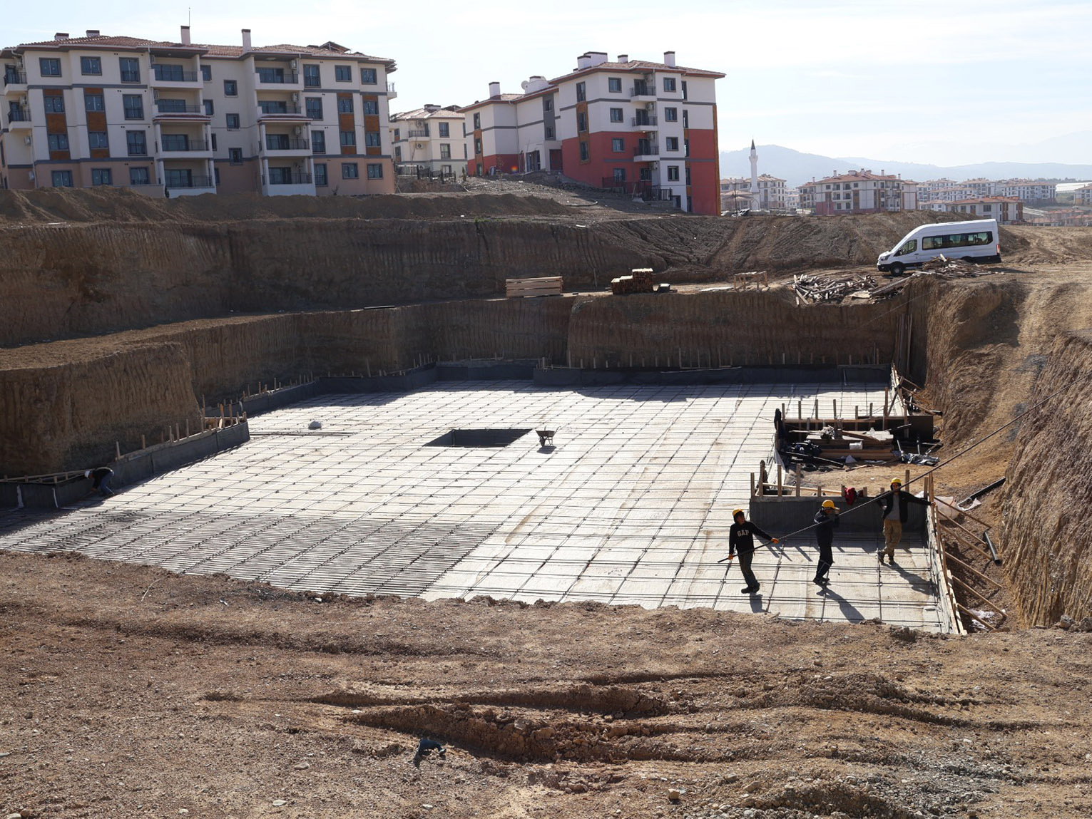Her biri 24 derslik olmak üzere toplam 72 derslikten oluşacak 3 okulun yapım süreciyle ilgili yetkililerden bilgi alan Kaymakam Eroğlu, çalışmaların planlanan takvim doğrultusunda ilerlemesinin önemine vurgu yaptı.