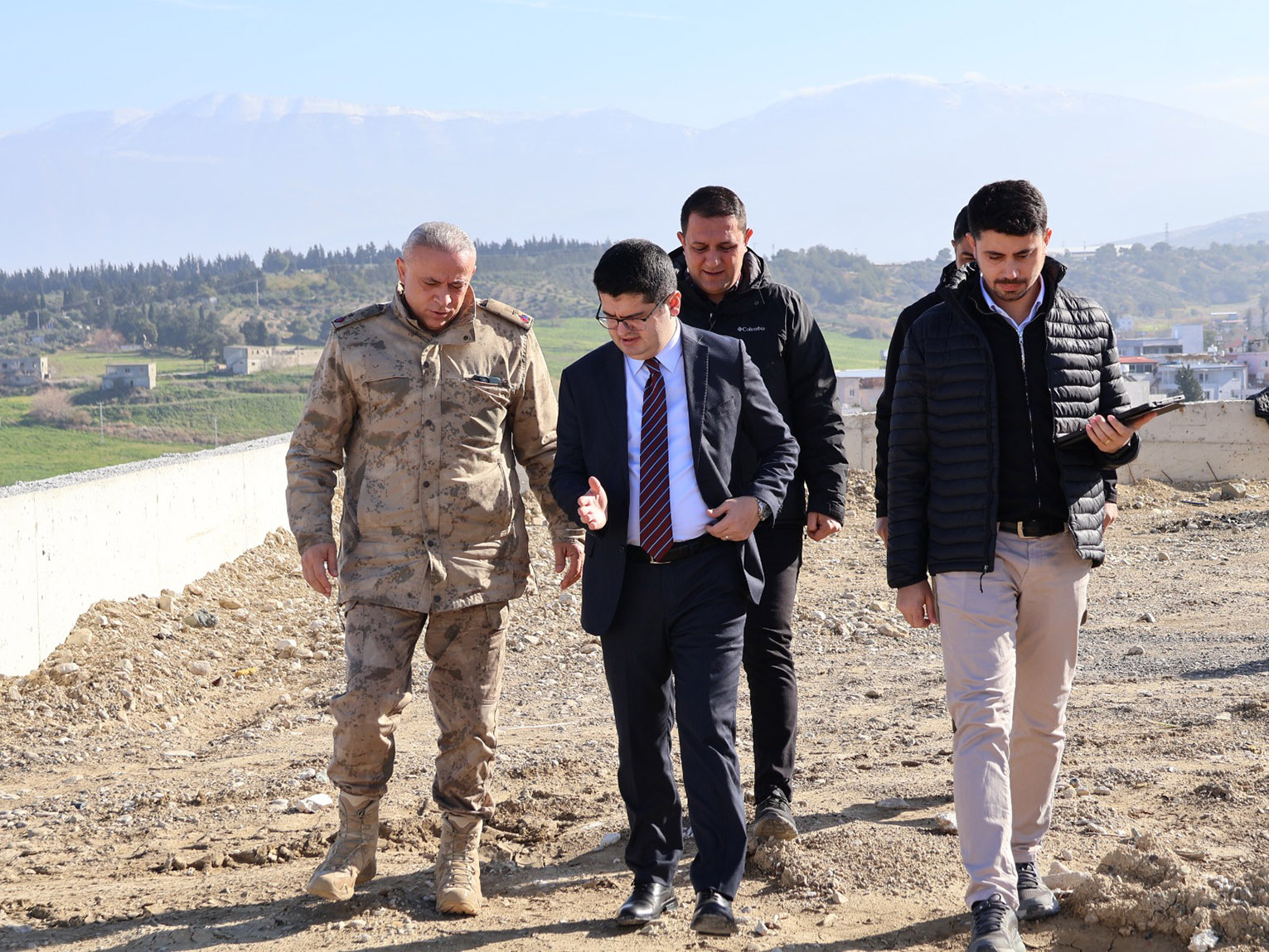 Kaymakam Fatih Eroğlu, Arsuz İlçe Jandarma Komutanı Binbaşı İbrahim Dündar ve firma yetkilisi ile birlikte, yapımı tamamlanma aşamasına gelen Pirinçlik Jandarma Karakolu inşaat alanında da incelemelerde bulundu.
