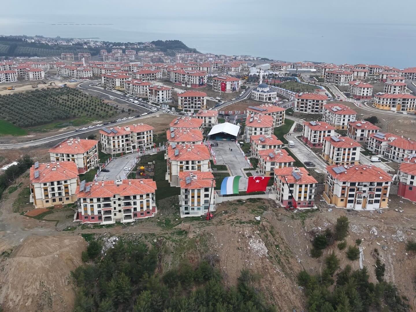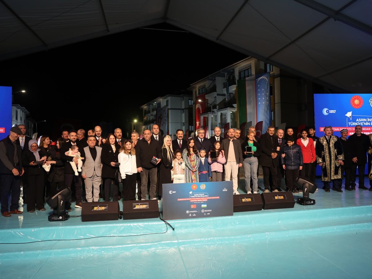 Deprem konutlarının yapımı tamamlanırken bugün Cumhurbaşkanı Recep Tayyip Erdoğan’ın daveti ile Türkiye’ye gelen Özbekistan Cumhurbaşkanı Şevket Mirziyoyev’un da katılımı ile anahtar teslim töreni gerçekleştirildi.