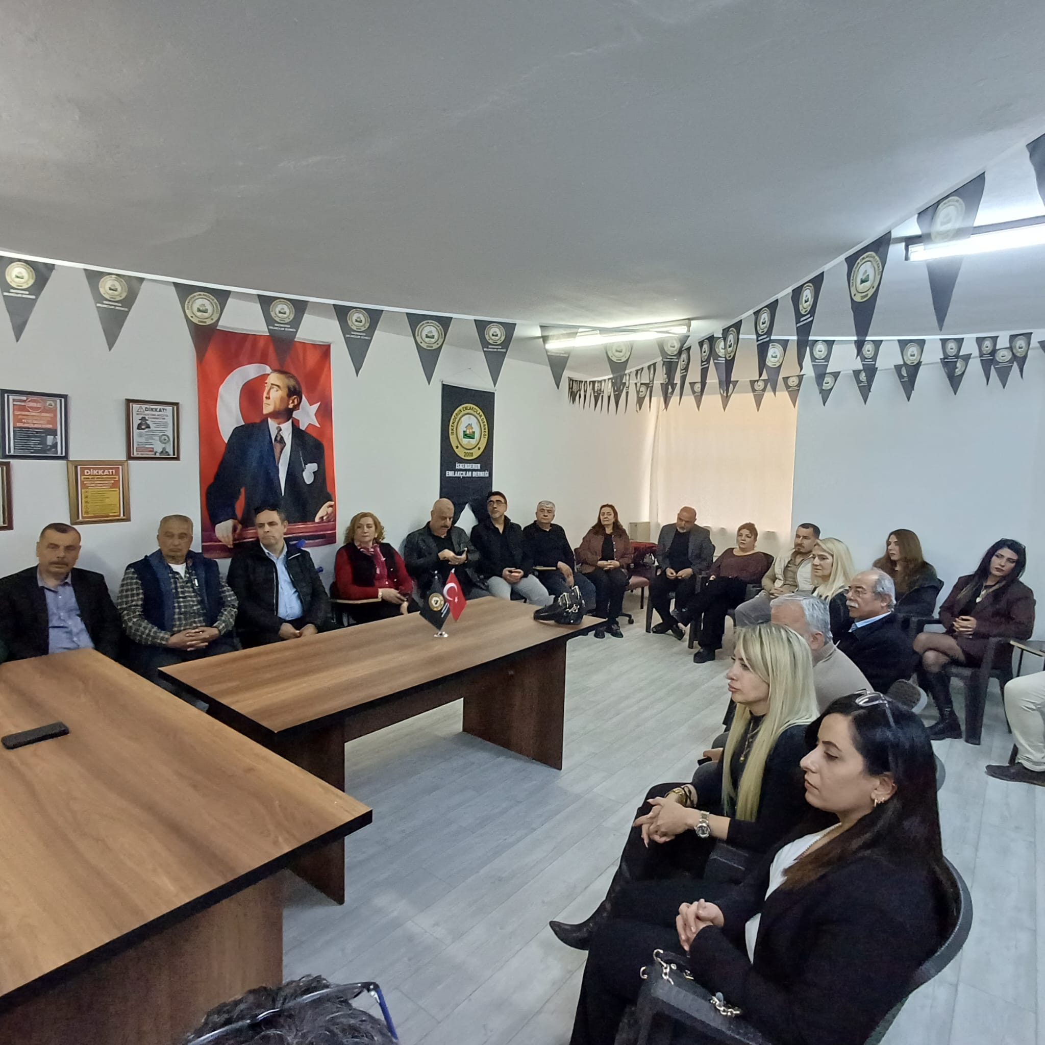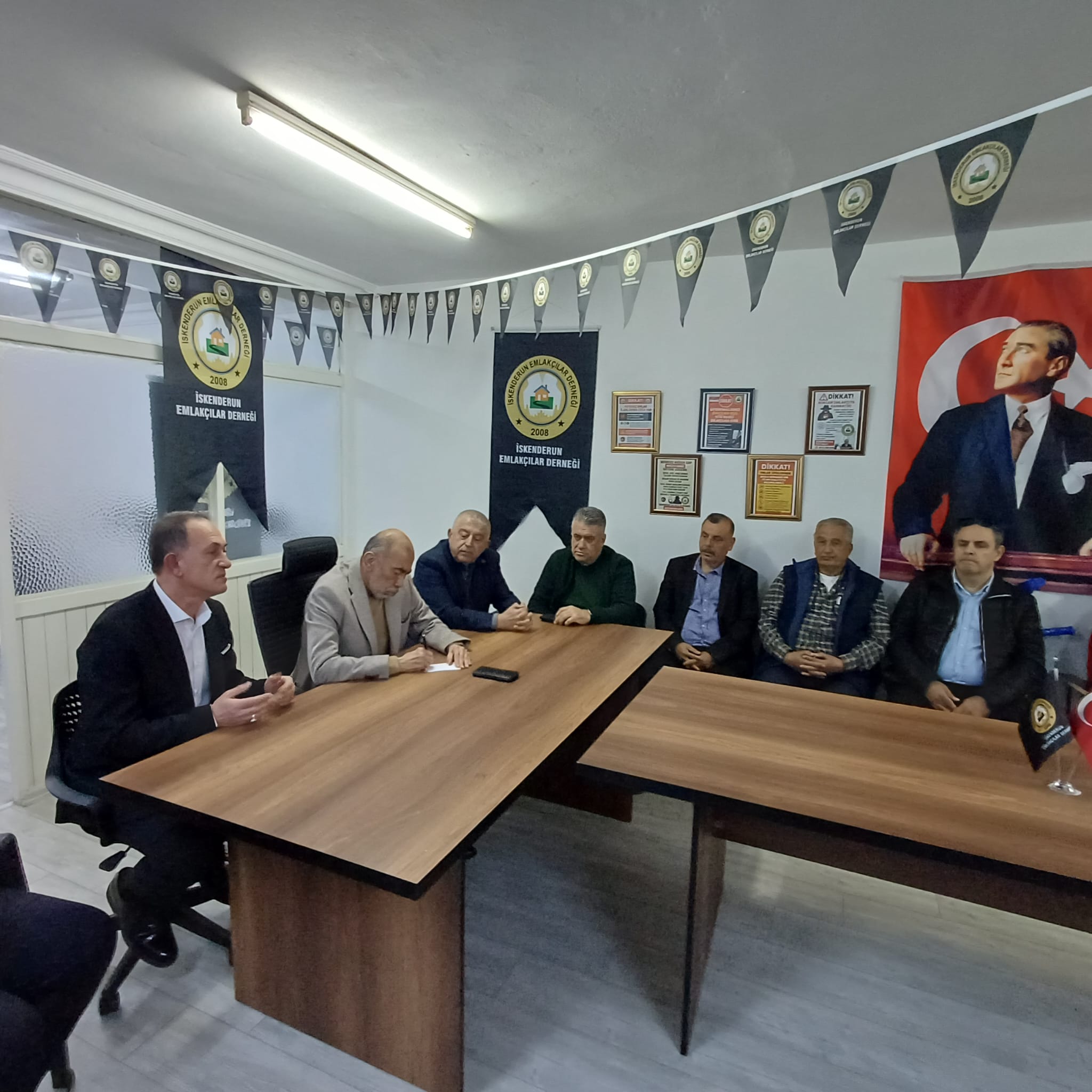 İYİ Parti Hatay Milletvekili A. Şefik Çirkin, İYİ Parti İl Başkanı Nazmi Ceylan, İlçe Başkanı Mustafa Barın ve İl Yönetim Kurulu Üyesi Mustafa Dükkancı ile birlikte İskenderun Emlakçılar Derneği’ni ziyaret etti. Emlak piyasasındaki son durumu ve önümüzdeki sürecin değerlendirildiği ziyarette, bu yıl emlakçılara getirilen nüfusu 30 bin üzeri yerlerde 40 bin TL yıllık yetki belgesi harcı meselesi üzerinde duruldu.
