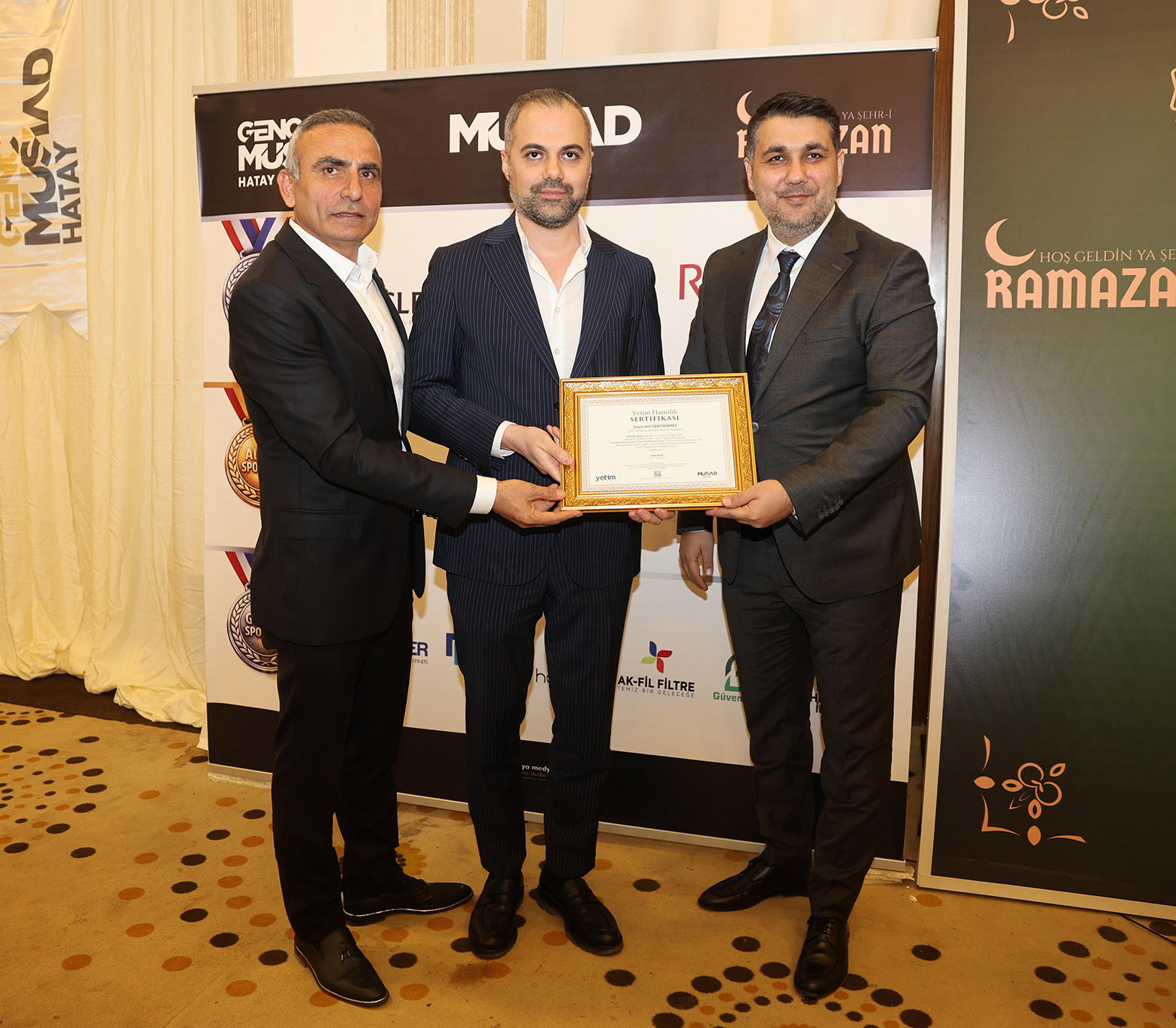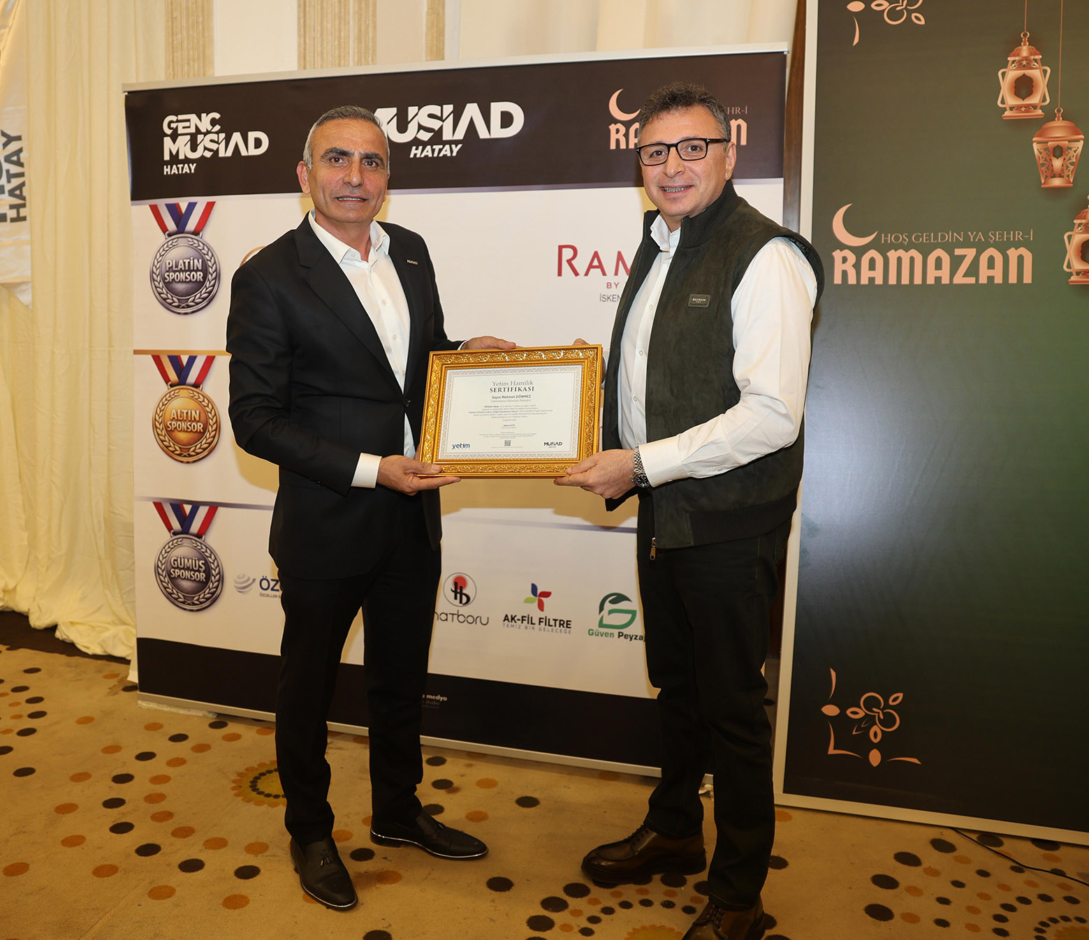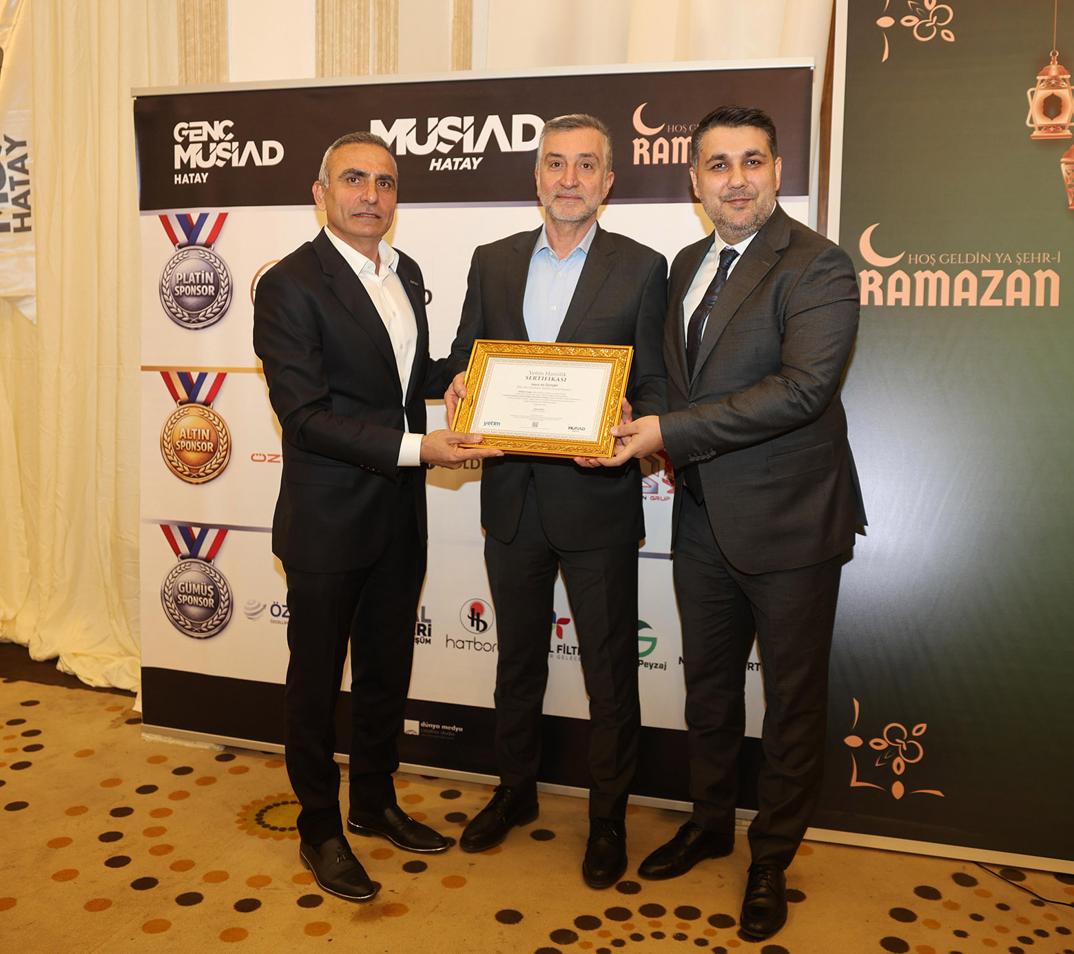 Programda protokol konuşmalarının yanısıra, MÜSİAD Hatay Şube olarak her yıl düzenli olarak verilen burslara katkı sağlayan üyelere de MÜSİAD Hatay Başkanı Ahmet Akyüz ve MÜSİAD Teşkilatlanma Komisyon Başkan yardımcısı Ahmet Gürel tarafından plaket takdiminde bulunuldu.