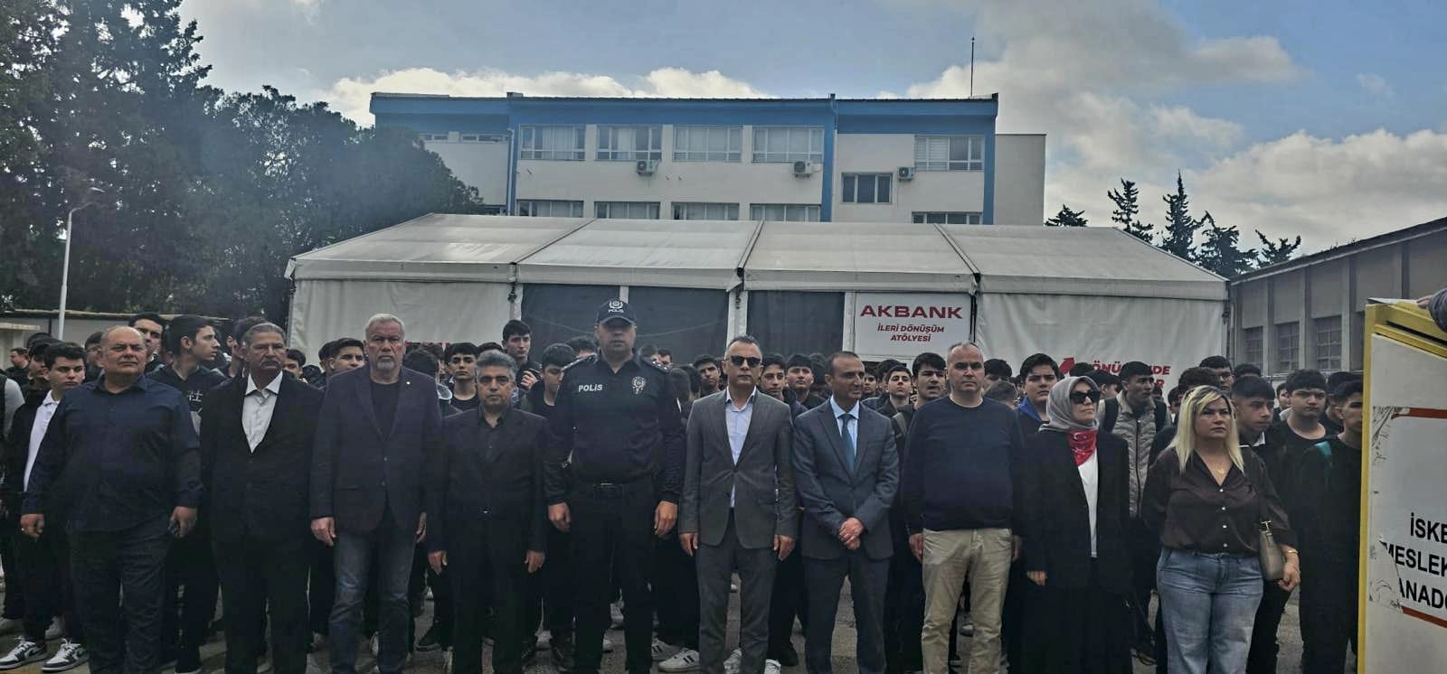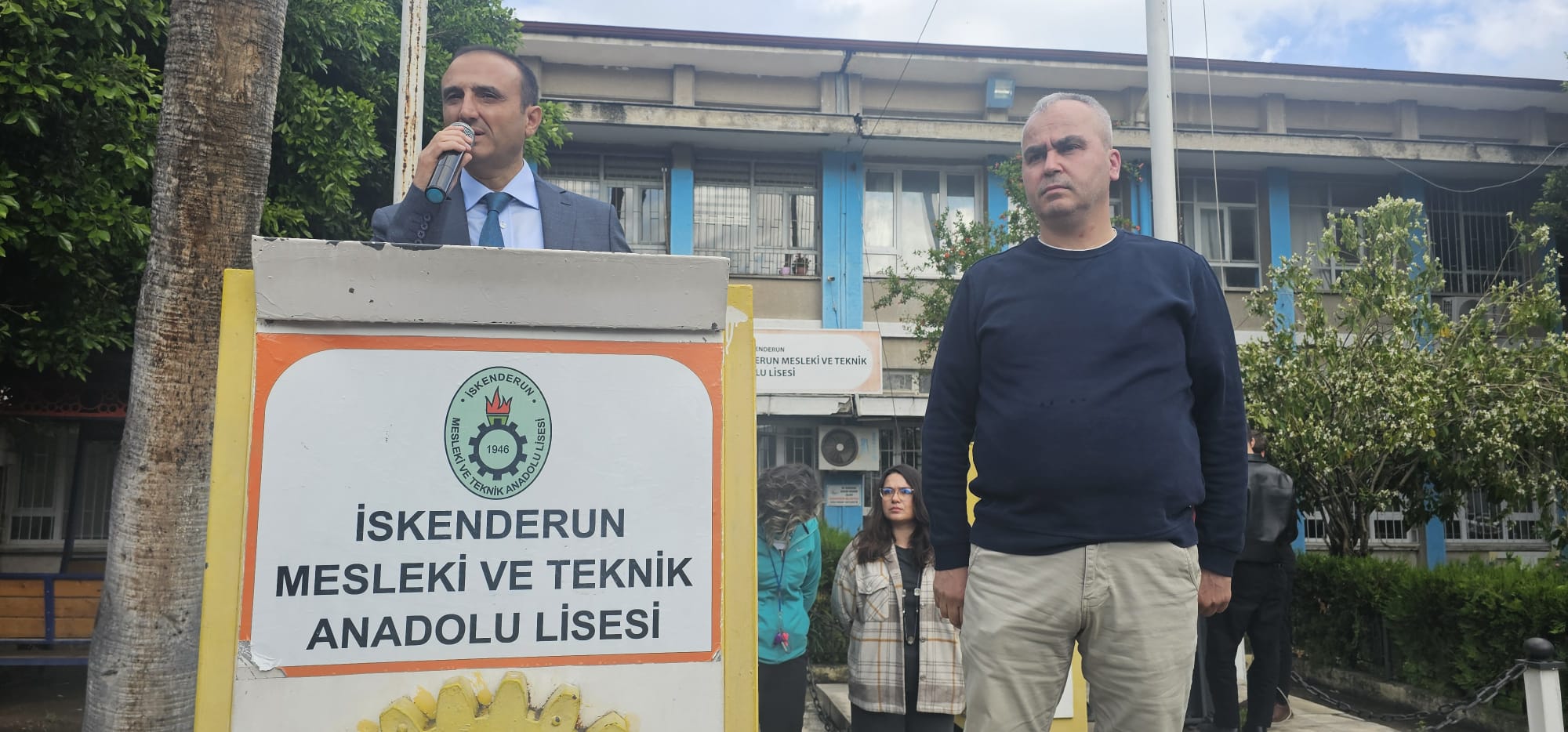 Emniyet Müdürü Nevzat Güneş, sabah İskenderun Mesleki ve Teknik Anadolu Lisesi Müdürü Yusuf Yıldırım, idareciler ve öğrencileri okulda ziyaret ederek, onlarla birlikte İstiklal Marşını okudu.